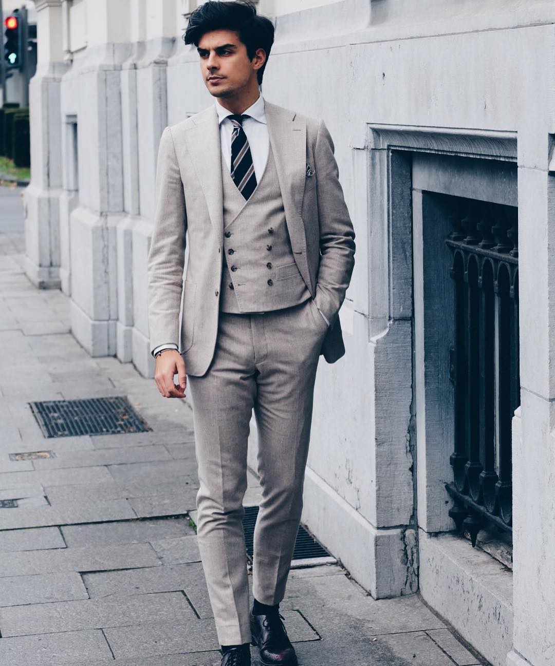 Een goed zittend pak is belangrijk, jij wil er niet zo bijlopen als de Amerikaanse zak. Wat belangrijk is, wanneer jij een smalle lichaamsbouw hebt, om het pak op de juiste punten te laten spreken. Kies daarom voor de klassiekere fit van het pak, met een verstevigde schouder. Deze verstevigde schouder geeft jou iets meer body. Daarnaast is het verstandig om de taille wat slanker te maken, zodat je een V-look in je lichaam creëert. De broek die laat je niet slank afspelden, kies voor een wat klassiekere rechte fit hierin. Zo heb jij een mooi gesneden pak perfect voor je smalle lichaamsbouw. Omdat de zomer eraan komt, is het verstandig om voor een wat lichtere stof te gaan. Kies voor een mix van linnen en wol of puur linnen en ga voor een half gevoerd of ongevoerd jasje. Zo zal jij alle mannen in hun gevoerde wollen pakken uitlachen, terwijl zich kapot staan te zweten heb jij nergens last van.