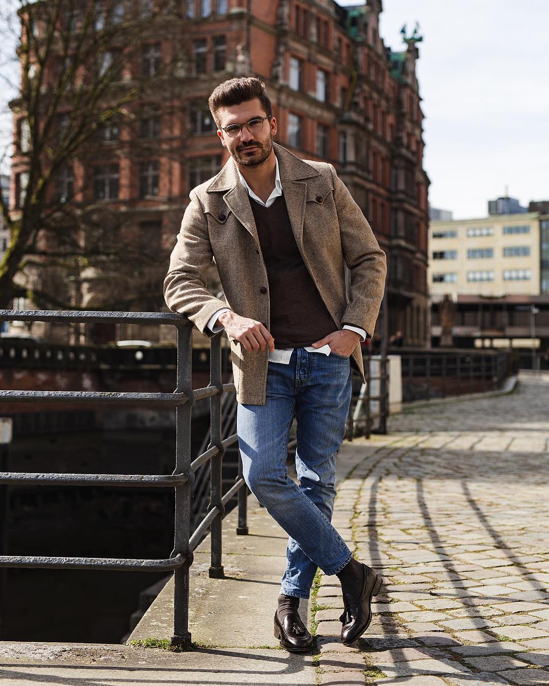 De meest geschikte kledingstukken zijn ook nog eens makkelijk met elkaar te combineren. In plaats van het dragen van enkel een overhemd, kan je er nu een bruine trui bij dragen. Samen met een peacoat of safari jacket en jeans zorg je ervoor dat er subtiele verschillen in de outfit aanwezig zijn. Lederen loafers dienen als kers op de taart van deze formele look.