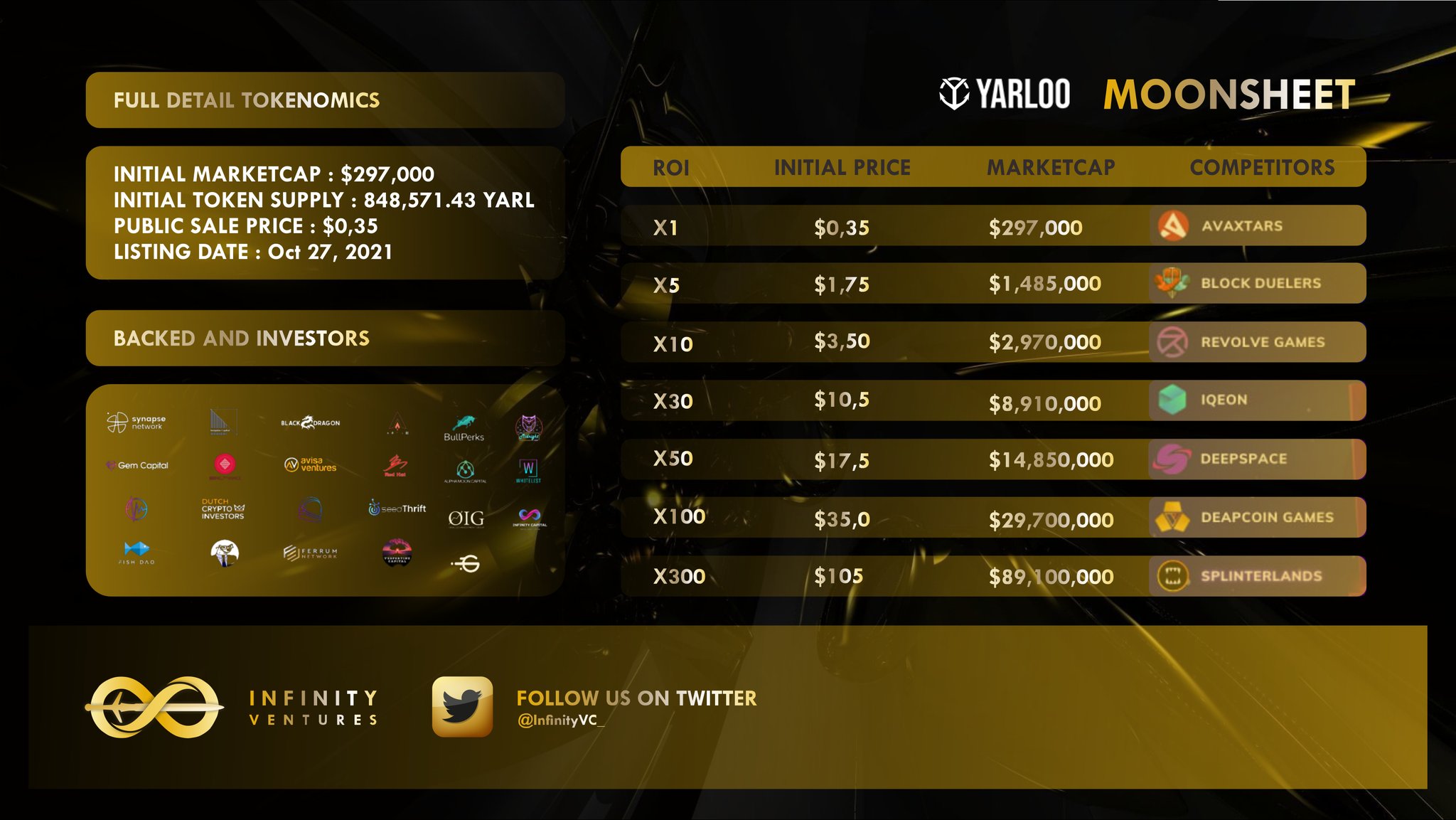 We hebben het al kort benoemd, maar wat is $YARL nou precies? Dit is de native token van Yarloo gebaseerd op twee verschillende blockchains ‘Binance Smart Chain & Polygon’ (BEP-20 & Matic-20). $YARL zal een zeer belangrijke rol spelen binnen het platform door te werken als een governance token, door het kernonderdeel te zijn van het RST-model en te fungeren als de belangrijkste bron van in-game transacties. $YARL holders zullen in staat zijn om passief inkomen te verdienen, niet alleen via staking en het spelen van games, maar ook door het Revenue sharing model (RST). Momenteel staat het totale aanbod op 25.000.000 $YARL en zal de token te verkrijgen zijn op 27 oktober 2021.