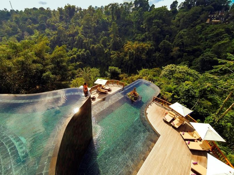 Vierenveertig privé villa’s bevinden zich aan de rand van een berg, diep gevestigd in de jungle. Een uitzicht waar je u tegen zegt en een pianovormige infinity-pool maken dit tot een luxe-bali experience in een prachtige natuurlijke omgeving. Je boekt hier een kamer.