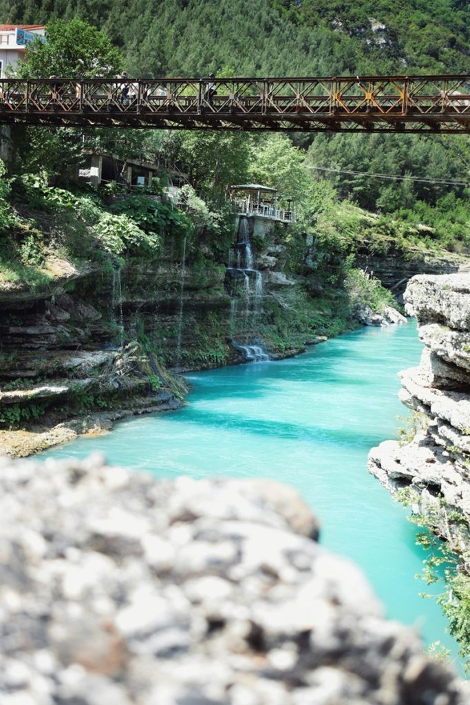 Na de tocht vol adrenaline op de rivier, kun je rustig rondkijken in het stadje Përmet. Een opvallend stadje dankzij haar enorme, tamelijk bizarre rotsformatie midden in de stad. Als je toch liever rondom het water blijft, kan je ook even buiten de stad chillen in de warme bronnen bij de eeuwenoude boogbrug in de Langarica canyon. Dat is in een zijstroom van de Vjosa rivier.