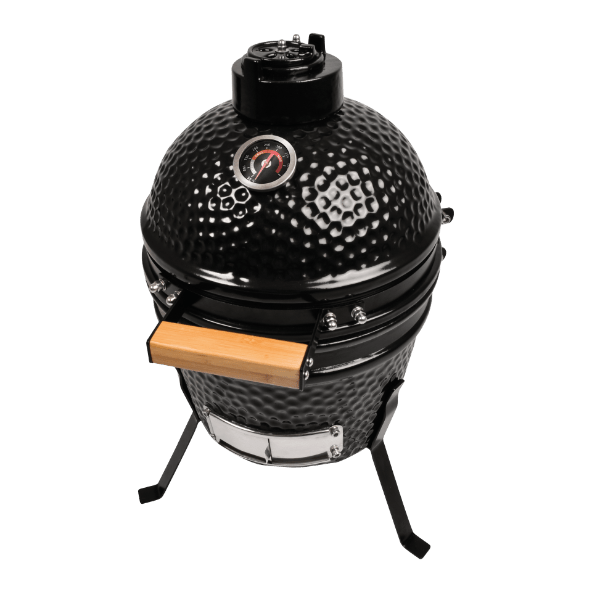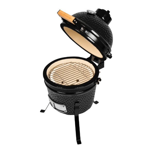 Deze handige mimi Kamado is lekker compact. Zo weegt de barbecue slechts 18 kilo en kan hij gemakkelijk worden opgetild door één persoon. Deze mini Kamado is ideaal om een kleine groep mensen van heerlijke barbecuegerechten te voorzien. Het kookoppervlak is groot genoeg om te grillen voor 3 personen tegelijkertijd. De Kamado is slechts 55 cm hoog, hierdoor kan hij makkelijk op een stevige tafel staan.