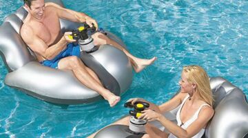 Deze opblaasbare botsauto’s zorgen voor een strijd in het water