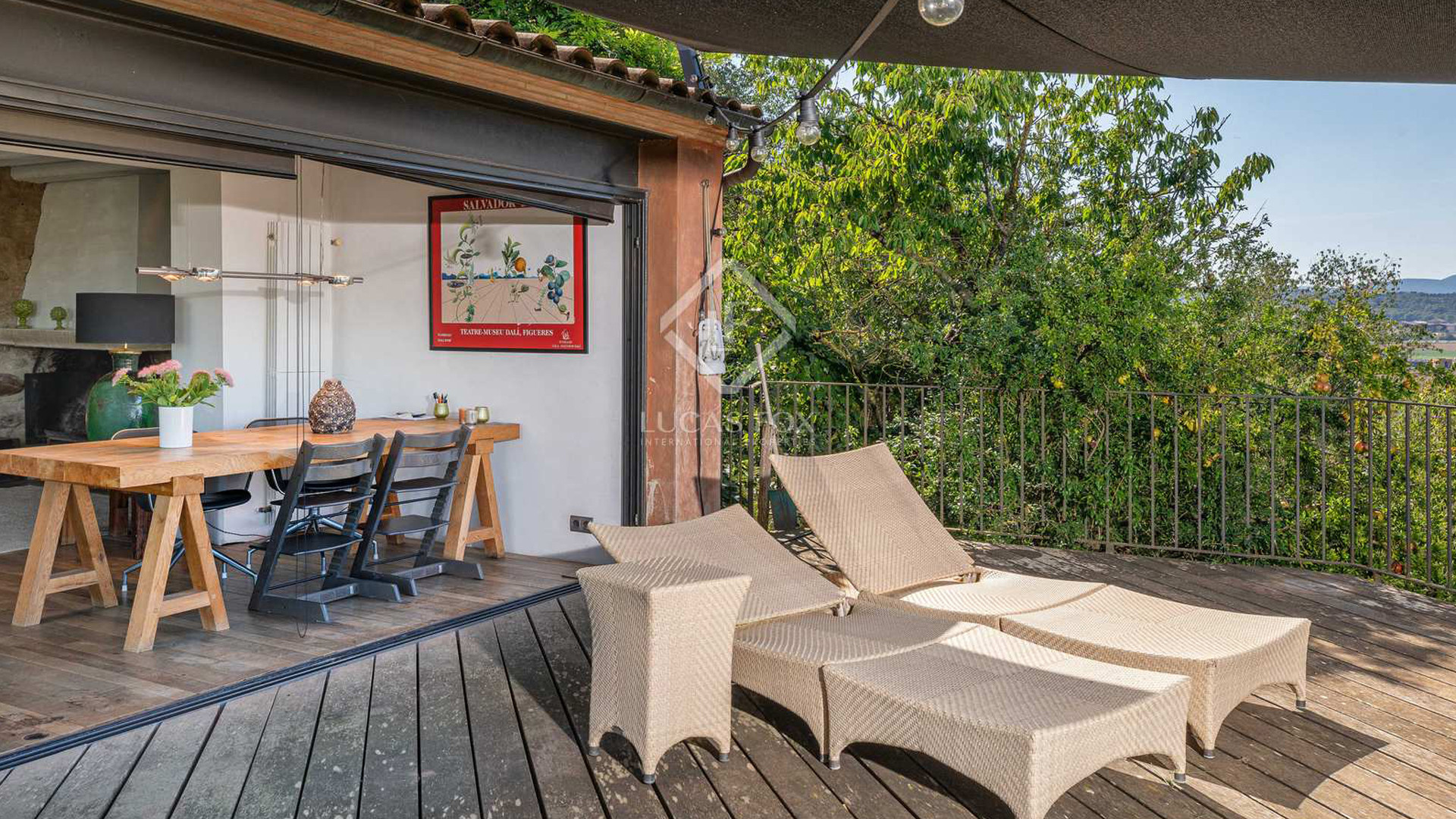 De woning is verdeeld over drie verdiepingen. Naast vier slaapkamers zijn er drie badkamers en is er een zwembad in de tuin met een terras. Vanaf de begane grond heb je een spectaculair open uitzicht op de Baix Empordà. Er bevindt zich een grote veranda die als zomereetkamer dient en direct verbonden is met de keuken. Daarnaast is er een ruime woonkamer met grote ramen, waardoor de kamer voorzien is van veel natuurlijk licht. Tot slot is deze verdieping voorzien van een grote slaapkamer met een gastentoilet.