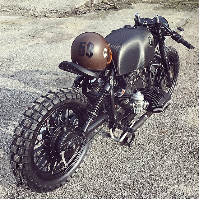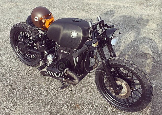 Deze custom bike is gebouwd door Relic Motorcycles in Denemarken. De originele BMW R100S werd volledig gestript tot alleen de essentiele onderdelen overbleven. Ironisch is dat de motor in de jaren ’80 diende als politiemotor. De complete achterzijde van het frame werd verwijderd en het overgebleven frame werd verlengd zodat er een Biltwell Harley solo seat op bevestigd kan worden met strakke LED verlichting onder dit zadel. Twee grote Hagon 420 mm schokbrekers met Continental Twinduro banden geven dit monster een brute uitstraling. Een custom stuur, mat-zwarte carbon tank en twee afgezaagde uitlaten kronen dit beest tot ‘Black Baron’ Genoeg gezegd: