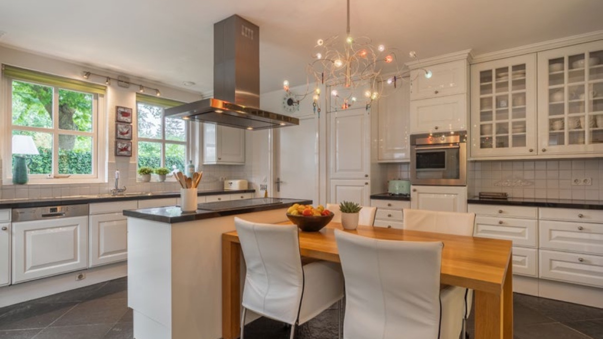 De villa heeft een totale woonoppervlakte van 325 vierkante meter, met maar liefst acht kamers, waarvan twee badkamers en vier slaapkamers. Bij binnenkomst loop je via de hal naar de ruime eetkamer. Als je ook deze doorloopt, kom je uit in de open woonkamer met veel natuurlijk lichtinval en een fijne zithoek. Koken kan in de prachtige luxe keuken met kookeiland. Daarnaast is er ook een smalle bijkeuken aanwezig.