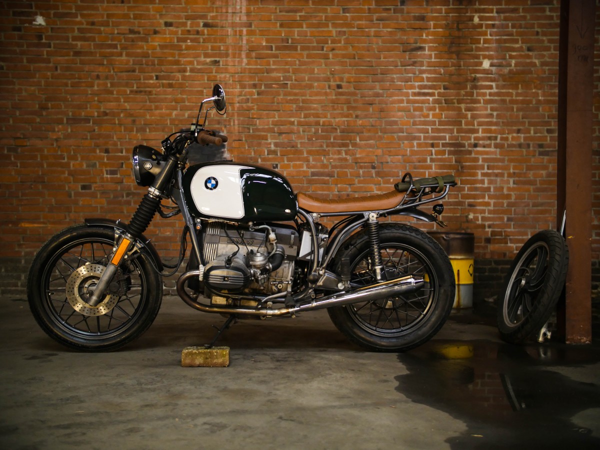 Deze BMW R80/7 werd vanaf 1981 gebruikt door de Nederlandse douane. Bij binnekomst is deze bike compleet gestript. Er is een compleet nieuwe frame gebouwd waar een nieuw, op maat gemaakt zadel is opgezet. De tank werd voorzien van een nieuwe kleur: British racing green. Terwijl het frame, velgen en andere onderdelen werden voorzien van een one-off gun metal grey kleur. Wat een monster.