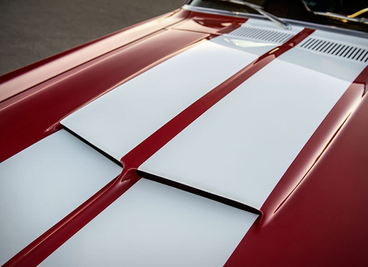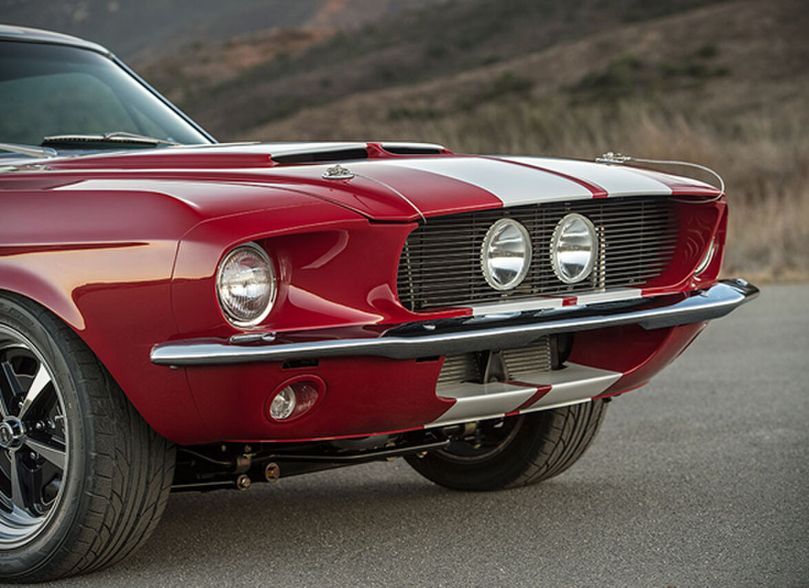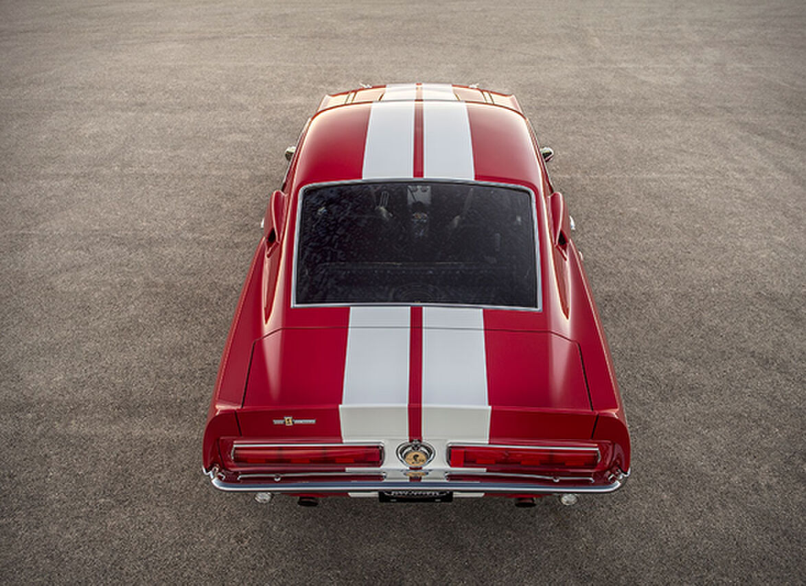 De mannen van Classic Recreactions hebben hun best gedaan bij het maken van deze brute verschijning. Voor dit exemplaar hebben ze een originele Mustang-body uit 1965-1968 gebruikt. De opvallende rode kleur en witte strepen geven deze auto een sportieve en krachtige uitstraling. Bovendien is dit exemplaar voorzien van allerlei moderne upgrades zoals een V8-motor en Shelby 427-wielen met Nitto-banden.