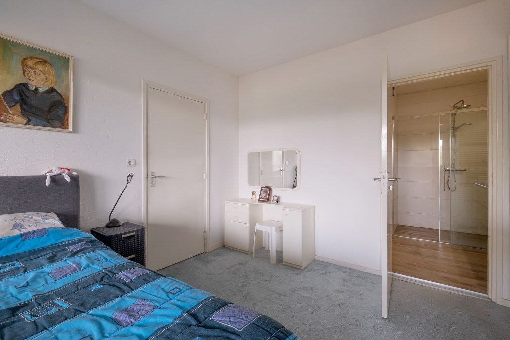Bij binnenkomst heb je een ruime hal, apart toilet en de weg naar de woonkamer. Ook heb je een balkon op het zuiden. Tot slot heb je natuurlijk de slaapkamers, ook vanuit daar heb je toegang naar het balkon. Maar die slaapkamer is wat de gemoederen bezighoudt. Er staat tussen een tweepersoonsbed namelijk een wandje. Dus is het omdat ze elkaars geur niet uit konden staan of zullen er toch andere dingen spelen? Maar blijkbaar waren ze elkaar niet helemaal zat, aangezien je er wel doorheen kan kijken.