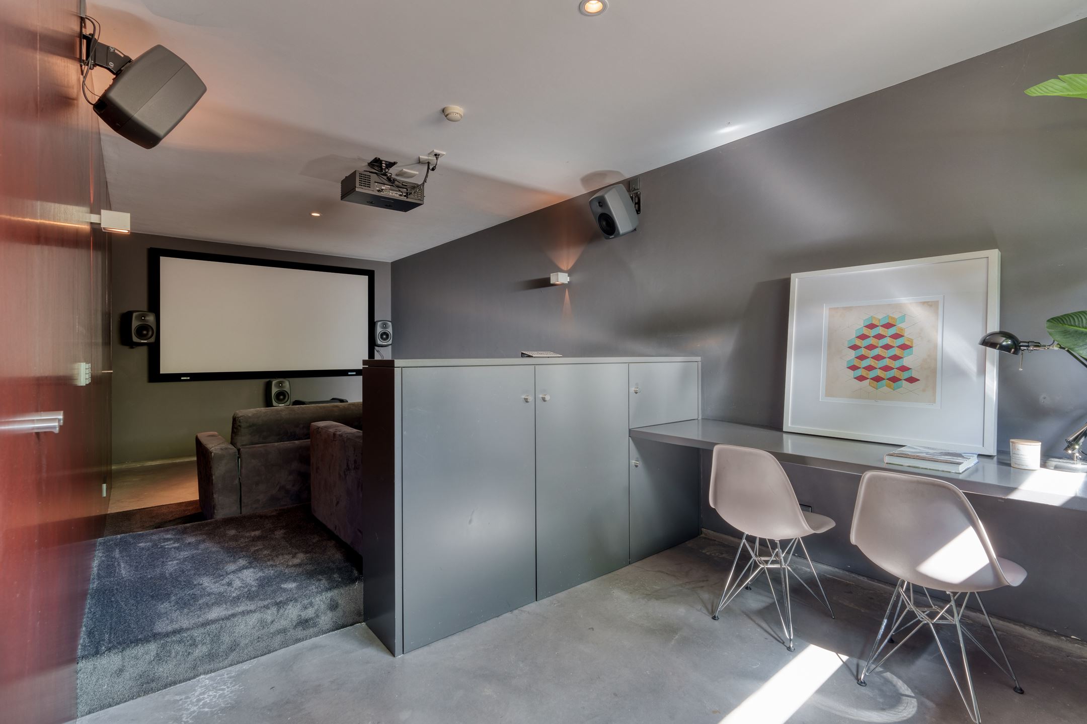 De villa heeft drie verdiepingen: een kelder, de begane grond en de bovenverdieping. De woonkamers zijn beneden, samen met een grote garage. In de kelder zijn er twee slaapkamers, een badkamer en zelfs een plek om films te kijken.