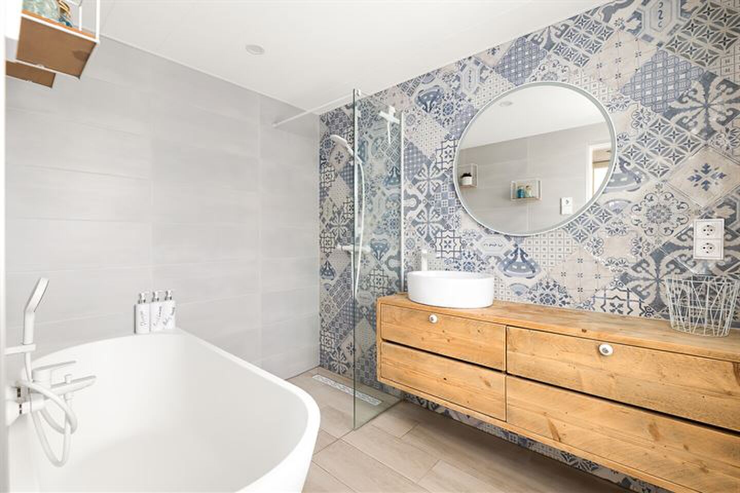 Badkamer met inloopdouche en ligbad