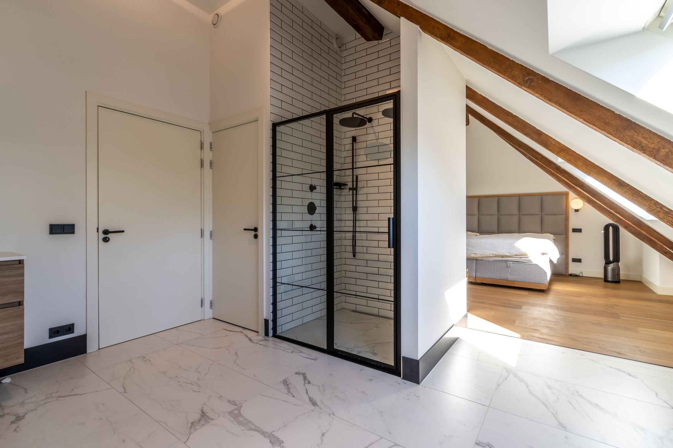 Na de open gang te hebben gehad, wandel je het woongedeelte op de verdieping in. En die ruimtes zijn zeker niet misselijk! Zo heb je naast een normaal ogende badkamer ook nog een heerlijke ruimte met dubbele douche en uiteraard de jacuzzi.