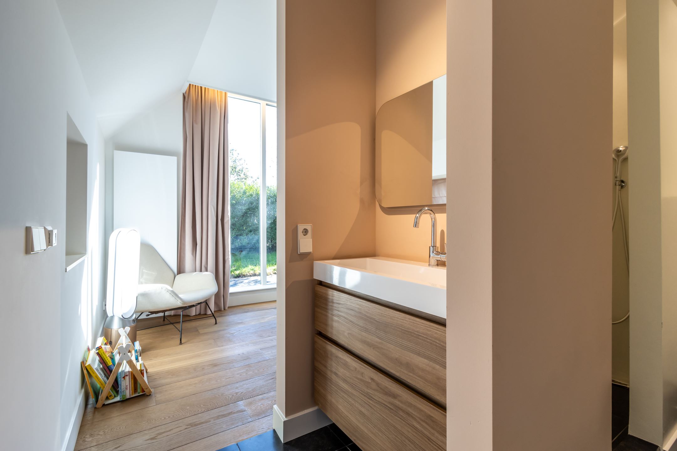 Wanneer je op de eerste verdieping staat, heb je naast uitstekend uitzicht op de woonkamer ook nog een open wandelgang. Dit biedt de ideale mogelijkheid om jouw unieke kunstwerken of andere gave items aan de muur te hangen. Heerlijk om daar in de ochtend met je bakkie koffie even langs te wandelen.