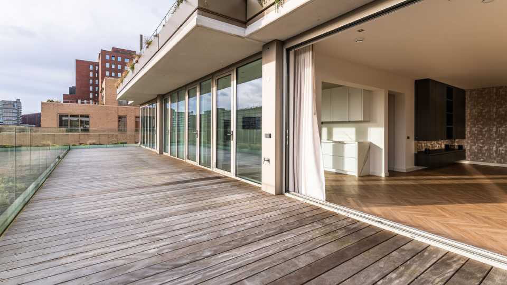 Een van de grootste pluspunten van het appartement is zonder twijfel het ruime dakterras. Hier kun je in de zomer genieten van de zon, een drankje doen met vrienden of gewoon even ontsnappen aan de drukte van de stad. Met uitzicht op de strakke lijnen van de Zuidas heb je hier echt dat gevoel van wonen op niveau.