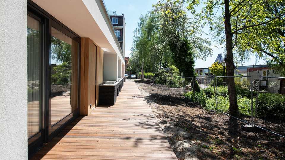 Ondanks dat de villa dicht bij de Jordaan ligt, woont ze tóch aan de bosrand. Ze heeft zelfs een mooie grote tuin waarin ze in alle rust kan genieten van de natuur om haar heen. En wanneer ze zin heeft om naar het centrum te gaan, loopt ze even haar ‘walking closet’ in en loopt ze zo de Jordaan binnen, waar ze zelf is opgegroeid.