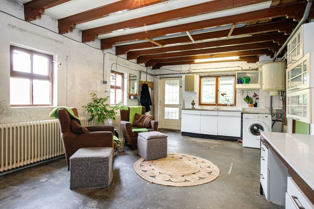 Tot slot maken de harten van retroliefhebbers een sprongetje bij het zien van de keuken op de begane grond, want deze is met recht nostalgisch te noemen. Ondanks de retro stijl werkt de keuken nog prima. Als je er toch voor kiest om het keukenblok eruit te slopen – wat we wel kunnen begrijpen – is het verstandig om een deel van de bijkeuken te betrekken bij de keuken. Deze is namelijk twee keer zo groot als de keuken zelf en hierdoor lijkt het huis meteen een stuk groter.