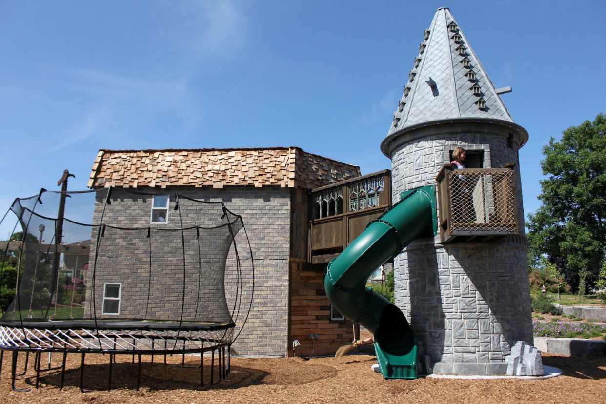 Aan de buitenkant lijkt het speelhuis op een combinatie tussen verschillende locaties. Het huis heeft namelijk ook kenmerken van de Wegisweg en Platform 9 3/4. De grootouders hebben kosten noch moeite gespaard. Zo is er een grote toren met een glijbaan en kan kleindochter Logan buiten schommelen op bezemstelen.