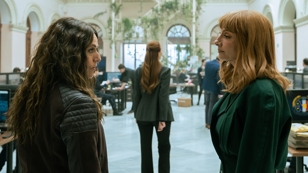 Op een van de foto’s valt op dat iedereen beschermende kleding draagt, wat erop wijst dat ze hun volgende opdracht uiterst serieus nemen. Helaas ontbreekt de techneut van het team, Keila, op deze foto. Het is waarschijnlijk dat zij achter de schermen heeft gewerkt aan speciale pakken om alarmen te kunnen omzeilen. Haar bijdrage zal ongetwijfeld van onschatbare waarde zijn tijdens de missie. Naast de spannende actiescènes zien we ook een romantische spanning tussen Roi en Cameron. Terwijl ze samen wacht houden, lijkt er meer te spelen tussen deze twee personages. We kunnen dus verwachten dat er ook een interessante verhaallijn in die richting zal worden ontwikkeld. Bekijk de nieuwe foto’s van de verwachte serie Berlin hieronder: