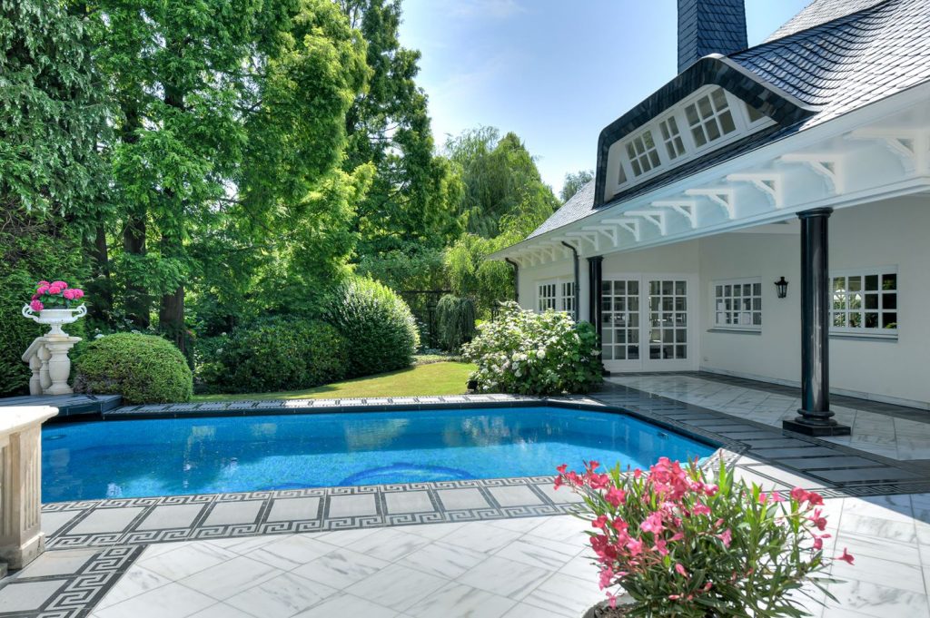 Om de fenomenale achtertuin te kunnen bezichtigen kan je gerust plaatsnemen in de driedelige woonkamer. Ook het uitzicht over de voorzijde van de woning is om je vingers bij af te likken. Om dit uitzicht te optimaliseren heeft de architect gebruik gemaakt van enorm hoge raampartijen en een ruimtelijke doorkijk. Ook is er rekening gehouden met een openschuivende deuren die toegang biedt tot het overdekte terras met warmtelampen. Ook gedurende de winterdagen kan er dus genoten worden op dit privéterras. In de designerkeuken kunnen de nodige hapjes worden bereid door middel van de nieuwste inbouwapparatuur. Ook de aangrenzende bijkeuken is volledig in de stijl van het hoogwaardige Clive Christian. Aan praktische voorzieningen zal je dus helemaal niets tekort komen!