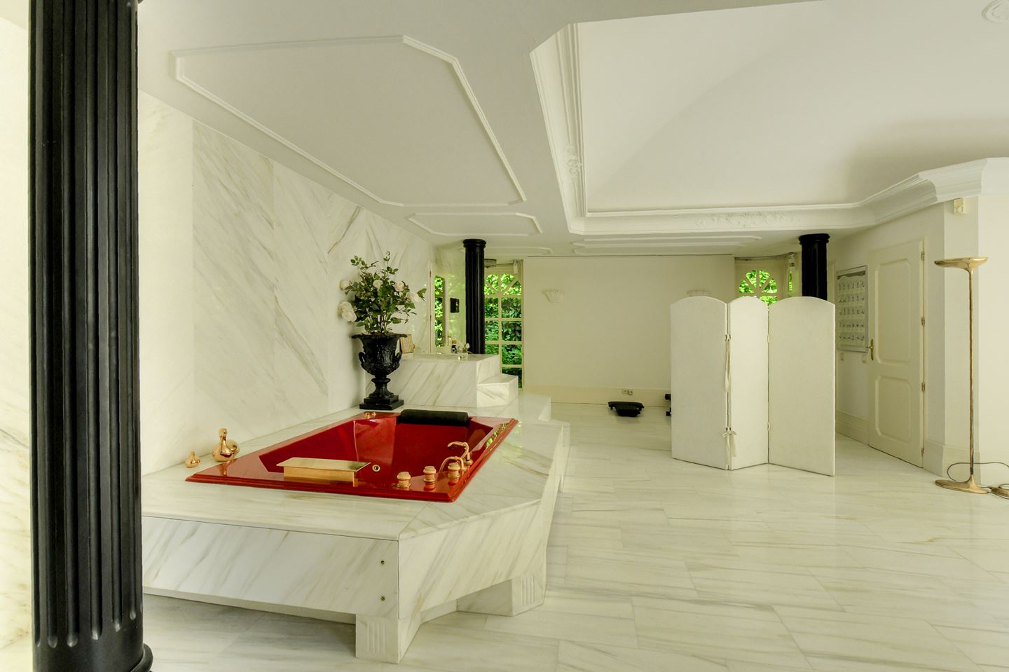 Het mooiste van de gehele woning is de immense masterbedroom. Vanuit deze ruimte heb je een fantastisch uitzicht over de parkachtige achtertuin. De kamer wordt in vergelijking gebracht met de Chambre de la Reine in het kasteel van Versailles. Er is bovendien sprake van een aangrenzende badkamer waar wederom veel gebruik is gemaakt van marmer. Ook hier is de luxe uitstraling dus aanwezig. Er is bijvoorbeeld sprake van een hoekligbad, luxueuze wastafel en een inloopdouche. Vanuit de aangrenzende slaapkamer is het mogelijk om het ruime dakterras te betreden.