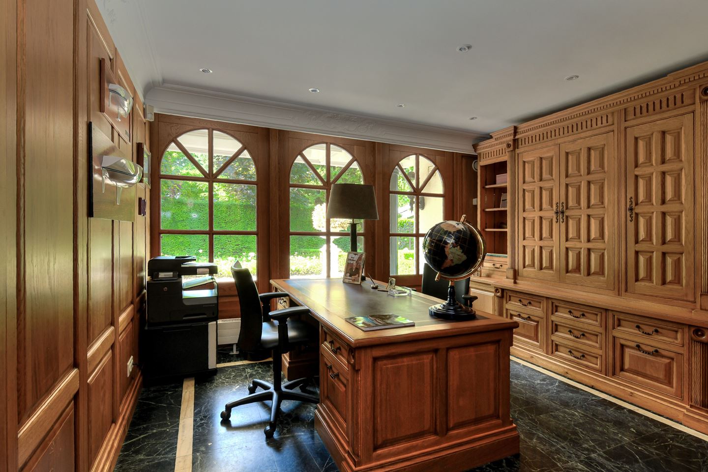 Die besparing is niet gemaakt tijdens de inrichting van de keuken en het kantoor. Deze ruimtes zijn namelijk uitgerust met het hoogwaardige populaire Engelse keukenmerk Clive Christian. Dat is overigens niet het enige peperdure merk waar veelvuldig gebruik van is gemaakt in deze Brabantse villa. Zo is het gehele huis voorzien van een Bang & Olufsen audio-installatie.
