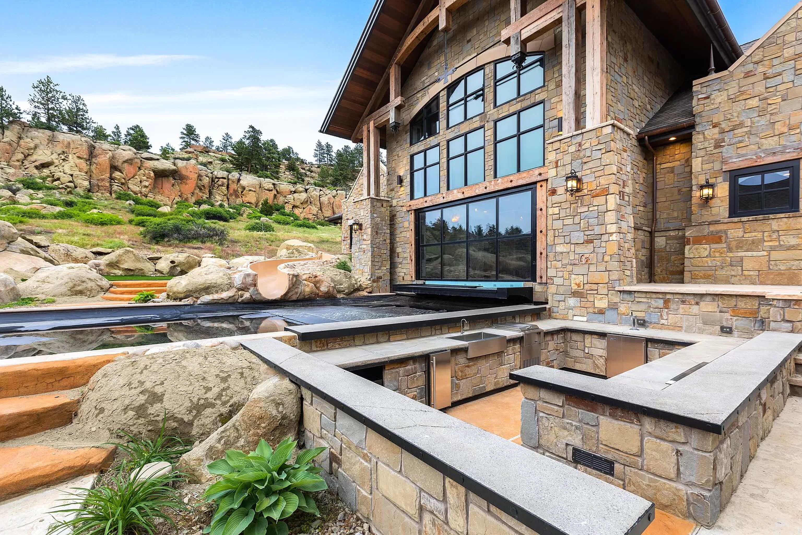 Maar al het moois speelt zich niet alleen binnen af, buiten is ook een genot voor het oog. Wanneer je aan komt rijden op de enorme oprijlaan kom je terecht bij de voordeur, maar eerst moet je nog wel een ophaalbrug over. Aan de zijkant van het nederige optrekje ligt een uitgestrekt zwembad die verlicht wordt door de talloze lichten die zich in en rondom bevinden. Naast het zwembad is er ook ruimte zat om een barbecue te organiseren in de buitenkeuken.