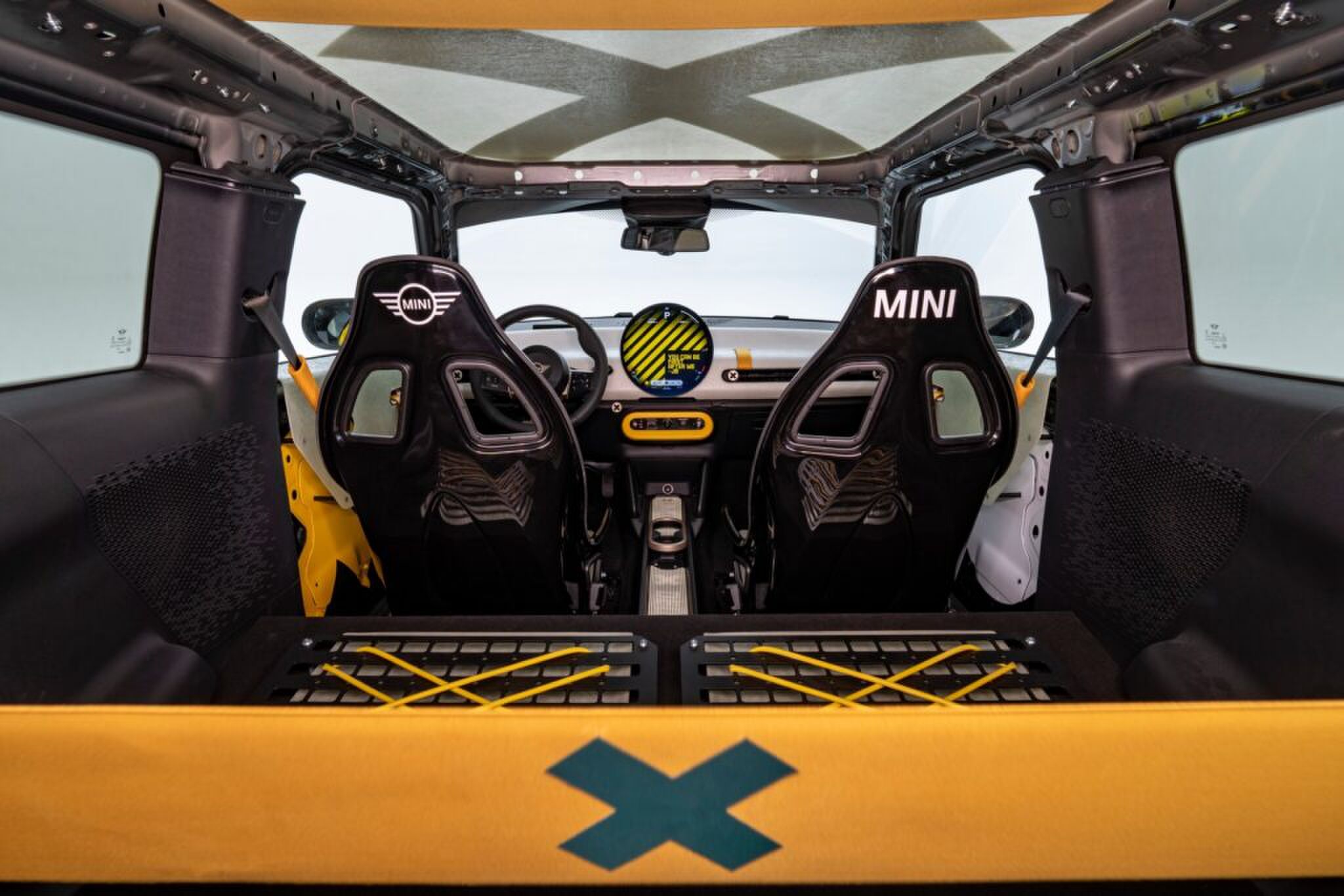 The Skeg – een elektrische MINI JCW met tot 190 kW/258 pk – is met zijn bijna dichte grille en geel-zwarte strepen is hij makkelijk te herkennen. De toevoeging van een grote spoiler en verbreedde carrosserie mogen er ook wel zijn, en dat kan ook niet anders.