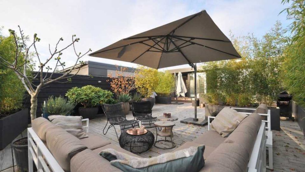 Op naar de open keuken. Deze is voorzien van een kookeiland en van diverse inbouwapparatuur. De keuken sluit goed aan op de woonkamer, waardoor het nog mogelijk is om tijdens het koken door te gaan met het gesprek dat je aan het houden was. Tot slot heb je nog de eetkamer met openslaande deuren naar het dakterras. Een heerlijke plek met een omvang van 156 vierkante meter, waar je heerlijk kan genieten van de oneindige zomeravonden.