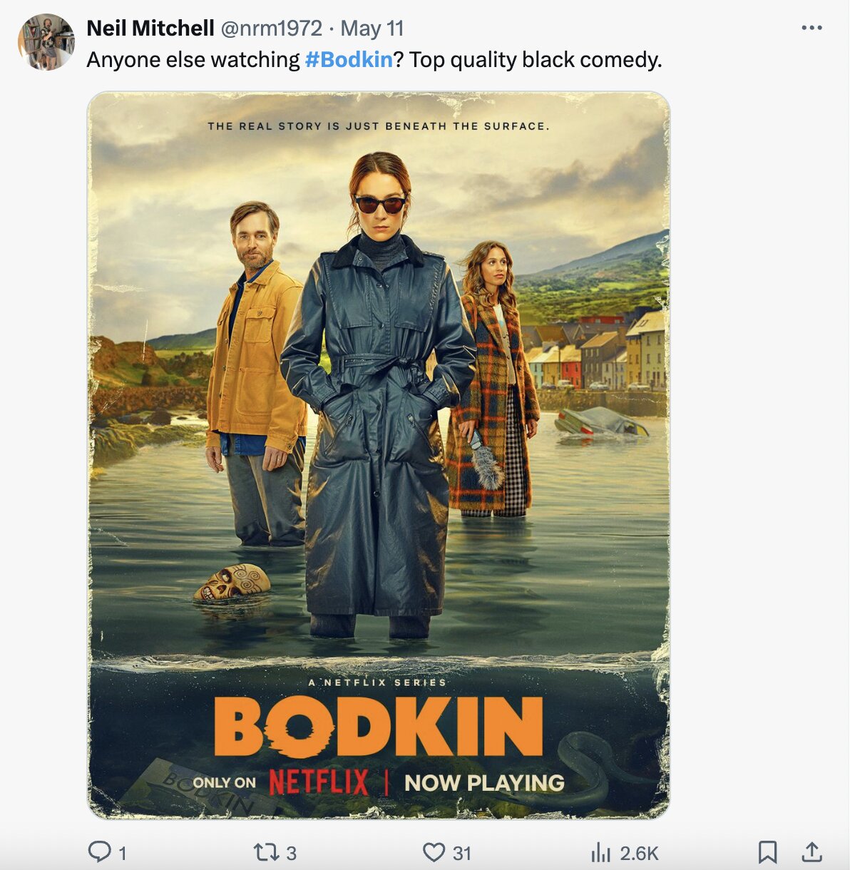 Bodkin blijft een serie die je niet wilt missen. Sinds de release op 9 mei blijft de populariteit groeien, vooral in Nederland waar de serie al op de tweede plek van best bekeken series staat. Dus, als je op zoek bent naar een meeslepende mysterieserie die je aan het denken zet, is Bodkin zeker een aanrader.