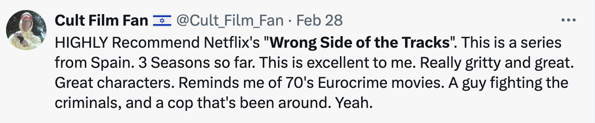De kenners van IMDb beoordelen de serie met een 7.4 / 10 sterren. Een dikke ruime voldoende dus. Maar wat vinden de normale kijkers van Entrevías? De kijkers zijn hooked door de serie, en lijken ontzettend blij te zijn met een nieuw seizoen. Op X (voorheen Twitter) doen een hoop goede reviews de ronde. Wij zetten een aantal van deze reviews voor jullie op een rijtje. Check ze hieronder: