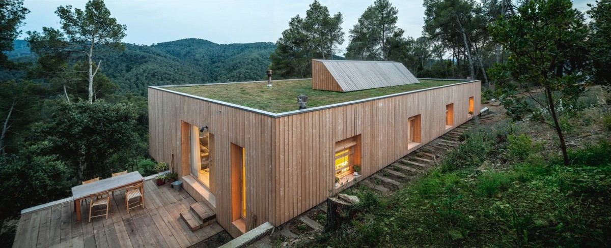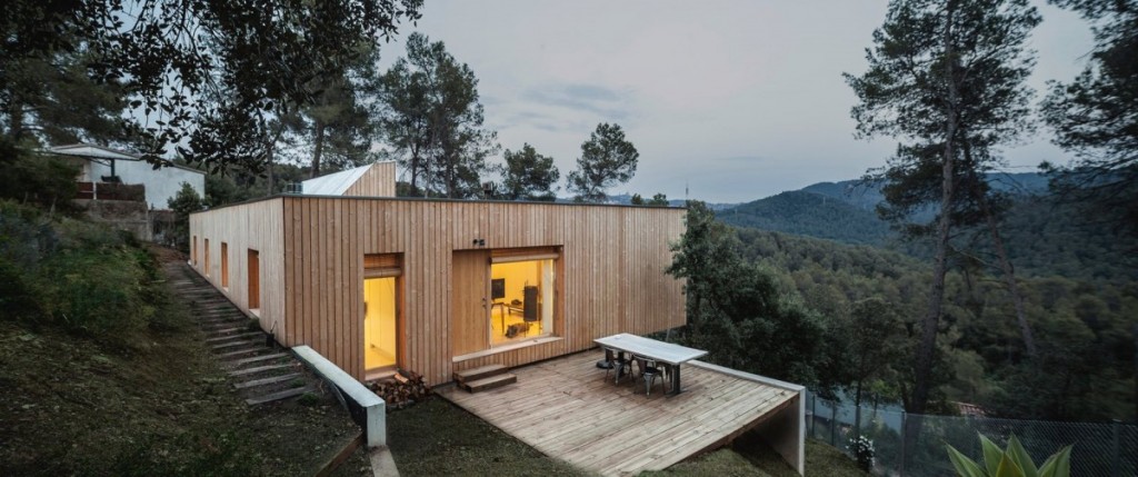 Je hebt dus een zak met geld en droomt ervan om een woning te hebben aan de rand van een bos. Op een heuvel en kijkend op dat bos. In Spanje, want je wilt mooi weer. Nou, dan doe je dit dus met je geld. En om een beetje in stijl van de omgeving te blijven, bouw je alles van hout.