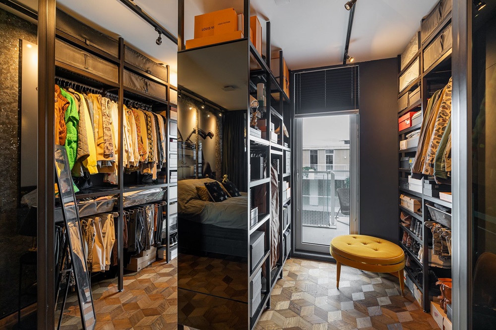 De slogan van het penthouse luidt: minimalisme is uit, maximalisme is in. Er is voor de woning dan ook gebruik gemaakt van hoogwaardige materialen. Je moet dan denken aan bijvoorbeeld geluiddempende schuifpuien, een driedimensionale houten vloer, bronskleurige deuren en wanddelen en textiele muurbekleding.