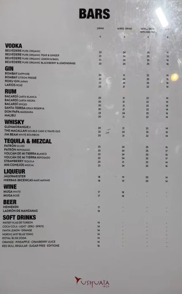 Op onderstaande filmpje is te zien dat iemand alleen een flesje water heeft besteld bij Ushuaïa en een indrukwekkende prijs van 14,- euro moet neerleggen. Dit is natuurlijk gekkenwerk. De prijs van 14 euro voor een flesje water kan deels worden verklaard door de mogelijk hoge operationele kosten die gepaard gaan met het runnen van een club. Denk bijvoorbeeld aan kosten van het personeel, beveiliging, licht- en geluidssystemen of het onderhouden van een hoog serviceniveau. Echter is het vragen van zo’n hoge prijs voor een flesje water echt overdreven. Je kunt dan beter een ander lekker drankje bestellen als de prijzen toch zo hoog liggen!