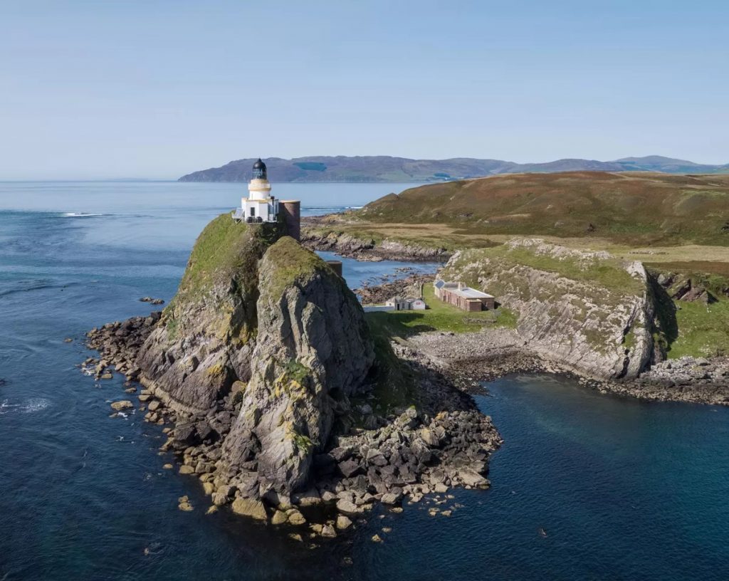 Privé-eiland met 7 huizen, een vuurtoren, 55 schapen én pub staat nu te koop
