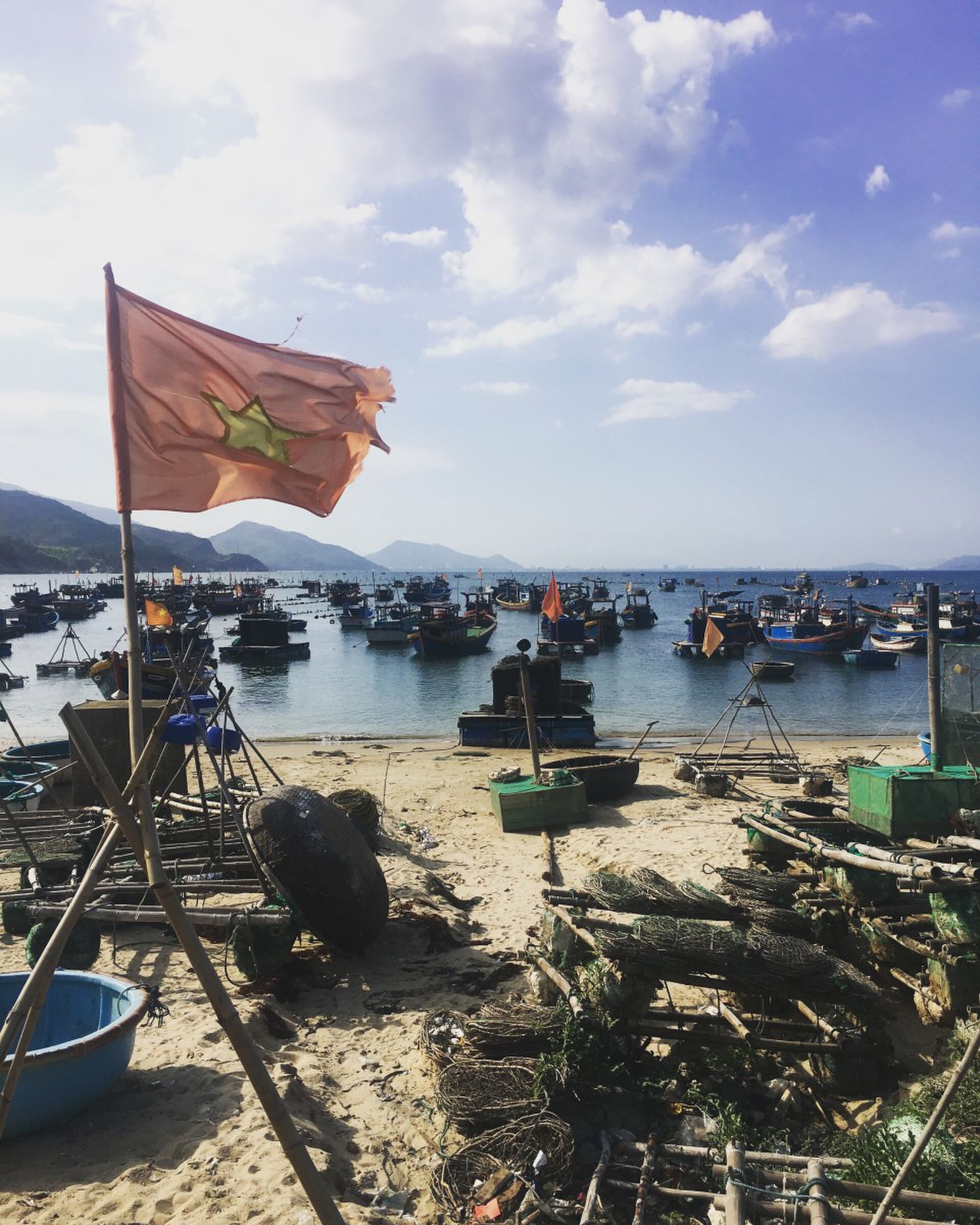 ‘s Ochtends vertrekken we zo vroeg mogelijk naar wat het paradijs zou zijn. 200 km over de highway 1 van Vietnam. We hadden ons voorbereid op een levensgevaarlijke rit over de drukke snelweg. Gelukkig was het zondag en werd dit ons bespaard. Na uren rijden en de zadelpijn negeren gingen we stijl naar beneden richting een kustplaatsje. Dit was een lokaal vissersdorpje waar niemand een woord engels spreekt, waar er buiten op straat wordt gekookt en iedereen voor elkaar zorgt. De mannen vissen en de vrouwen koken. We worden warm ontvangen en men wijst ons de weg naar onze verblijfplaats. Aan het einde van het dorp, aan de kust is een bar en zijn er strandhutjes waarin geslapen kan worden. Een nog niet ontdekte plek door het gros van de toeristen. Dit is het paradijs en hier zullen we enkele dagen blijven.