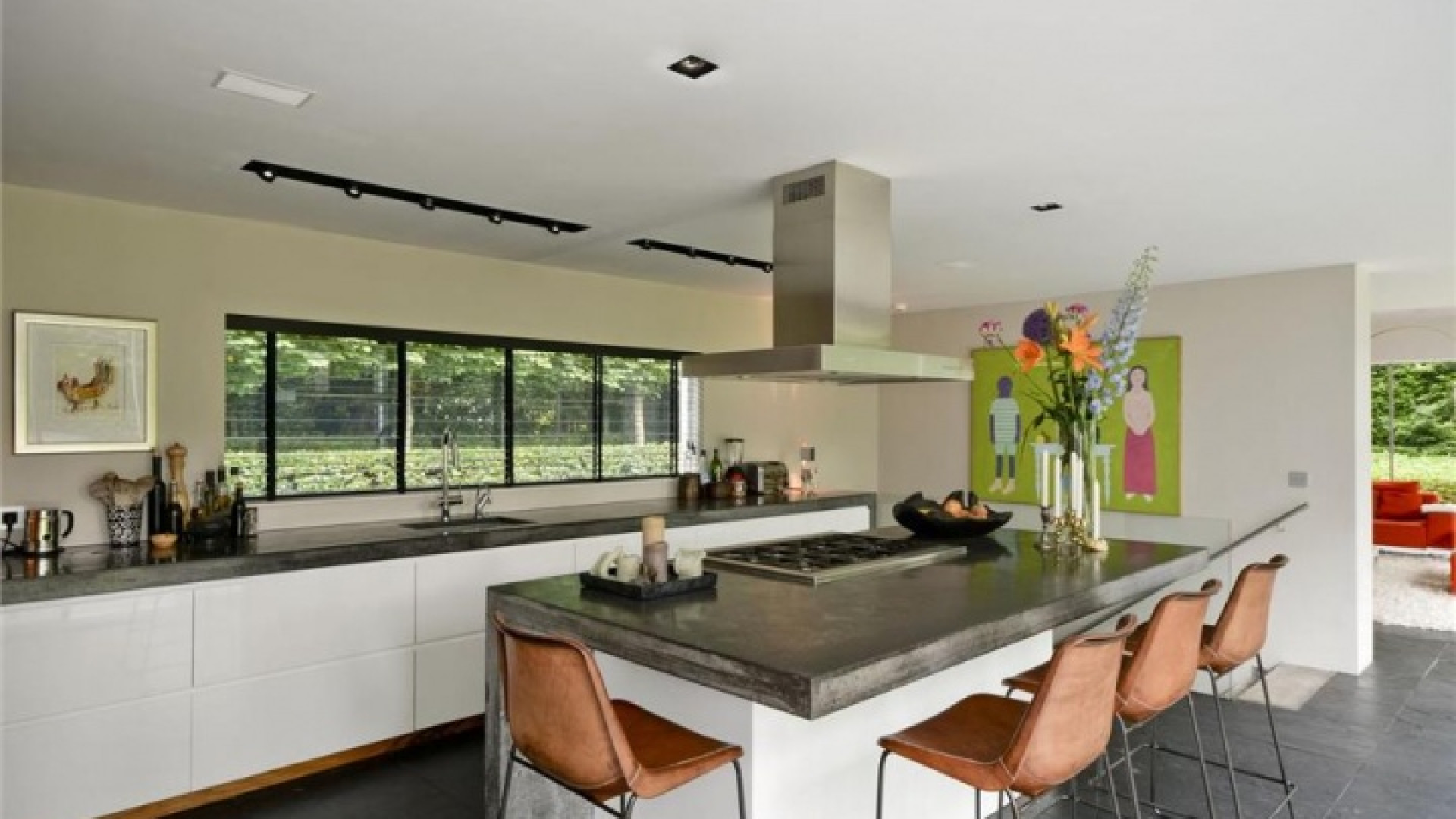 De vrijstaande villa is gelegen aan de bosrand en heeft een woonoppervlakte van maar liefst 356 m2. Deze luxe woning beschikt vijf slaapkamers en vier badkamers, verdeeld over twee woonlagen.Natuurlijk is er ook een keuken aanwezig, die tevens zeer luxe is. Daarnaast beschikt deze villa over een souterrain waar de fitnessruimte zich bevindt. Buiten bevindt zich de enorme tuin, welke is ontworpen door de bekende tuinarchitect Dick Beijer. De auto parkeer je gerust in de garage met een carport voor maar liefst twee auto’s. Zie hieronder een aantal foto’s of kijk op bekendeburen.nl: