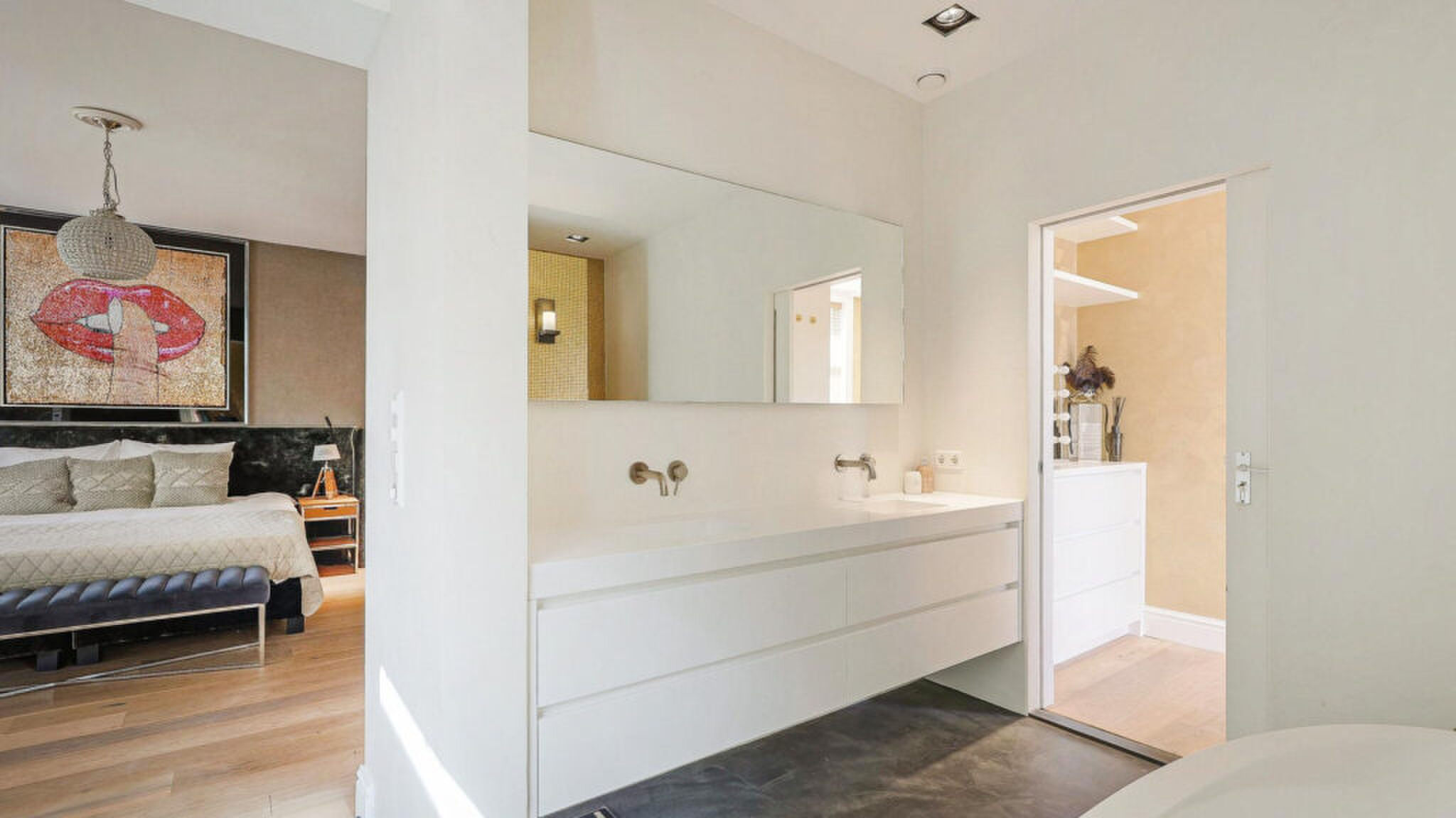 Als we kijken naar de buitenzijde voldoet het pand al aan alle verwachtingen. Oorspronkelijk betreft het namelijk twee aparte woningen, maar Sonja Bakker heeft deze panden samengevoegd tot één immens huis. Hierdoor is er sprake een riant woonoppervlak van bijna 315 vierkante meter en een indrukwekkende achtertuin. De villa heeft een authentiek karakter en is een fijne combinatie van klassiek en modern. De binnenzijde is vooral ingericht in de kleuren wit en beige, wat in de royale living totaal niet misstaat. In deze ruimte is gedacht aan grote ligbanken en een groot flatscreen. Ook het uitzicht over de omliggende tuin is erg uniek.