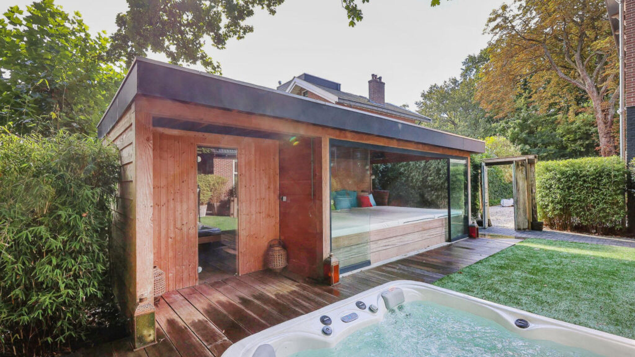 Ook de ruimte in de achtertuin is zodanig benut dat er aan luxe en comfort geen gebrek zal zijn. Er is bijvoorbeeld gedacht aan een grote sauna die, door middel van glazen schuifdeuren, uitzicht biedt op de rest van de achtertuin. Naast deze wellnessvoorziening is er rekening gehouden met een heuse jacuzzi aan de achterzijde van de villa. Hoewel dergelijke voorzieningen natuurlijk stroom vreten, zullen de maandelijkse energiekosten best meevallen. Wegens een twintigtal zonnepanelen is het pand bezegeld met energielabel B, waardoor je met een gerust hart de sauna aan kan slingeren. Zie hieronder een aantal extra foto’s van dit majestueuze huis van Sonja Bakker of neem een kijkje op Bekendeburen.