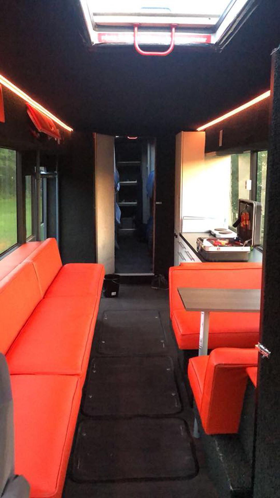 Oude stadsbus omgetoverd tot brute Max Verstappen-camper