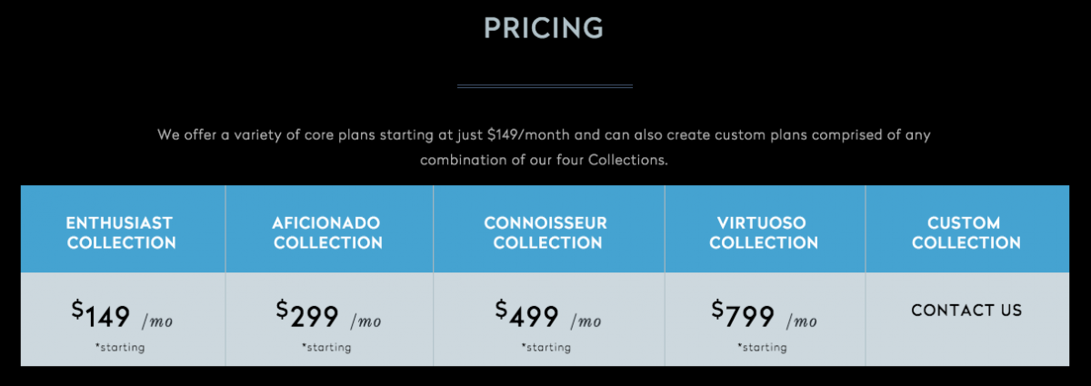 Er zijn verschillende soorten memberships, startend vanaf $150,- tot $800,- per maand. Hoe hoger het maandelijkse bedrag is, hoe exclusiever en duurder de horloges worden. De naam Eleven James is afgeleid van het ‘prototype’ Eleven James member: James Bond. De spion die altijd is uitgerust met gadgets.