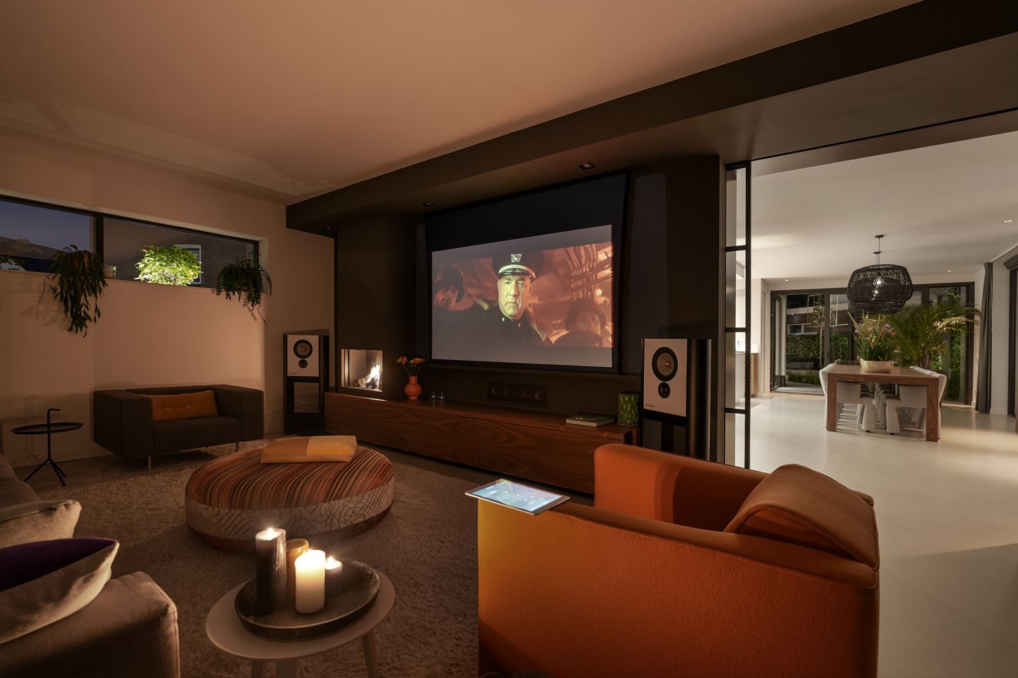 Wanneer je iets doorloopt, dan vind je het loungegedeelte. Deze ruimte is heerlijk om met een boek neer te ploffen, om lekker te converseren, of om je favoriete series te bingen. Ook nog leuk: boven de tv kan je ook nog een beamerscherm naar beneden laten rollen. Zo heb je het absolute bioscoopgevoel.