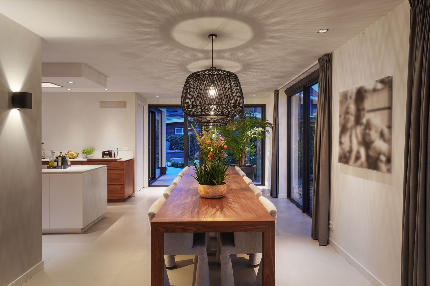 Wanneer je de woning binnenwandelt, dan kan je door een gang doorlopen naar de woonkamer. Hier staat momenteel een ruime eettafel, en een fraai ogende keuken. Al met al ziet dit er meer dan strak uit. Wanneer dit jouw stijl is, dan hoef je vrij weinig meer aan deze ruimte te doen.