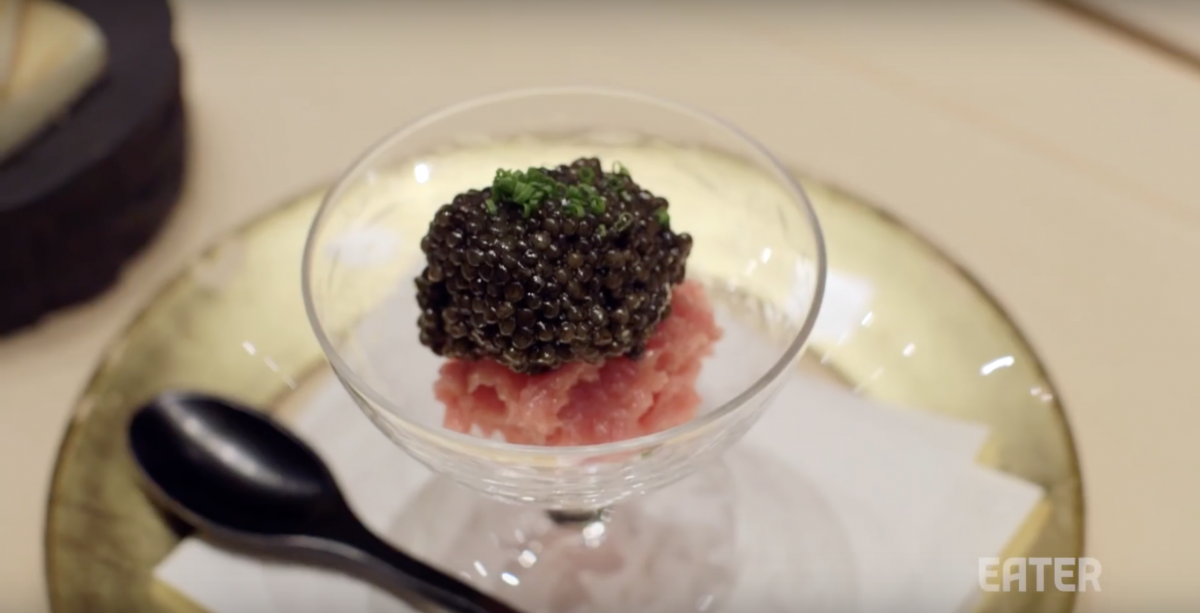 Ja, iedereen gaat veel te lekker op die ‘all-you-can-eat’ sushi restaurants. Logisch, het is all you can eat. Jezelf helemaal volproppen voor weinig. Feest! Maar het eten van deze Japanse delicatesse kan ook anders. En hoort anders, volgens chef Masa Takayama van drie sterrenrestaurant ‘Kappo Masa’. Bij sushi draait het om temperatuur. In een goed restaurant bereidt de chef de sushi’s voor je neus voor en is het de bedoeling dat je het direct opeet. Dat is wel een redelijk verschil met de suiker, ik bedoel sushi, die je bij ‘Genki’, ‘Shabu Shabu’ of ‘De Gouden Wok’ uit Hoofddorp te eten krijgt. Weinig diepvries tilapiafillet bij dit drie sterrenrestaurant. Maar kaviaar en zwarte truffel. Je betaalt dan ook $175,- voor 15 één-hap gerechten. Masa Takayama laat even zien hoe je sushi hoort te maken en te eten. Vakmanschap van de bovenste plank.