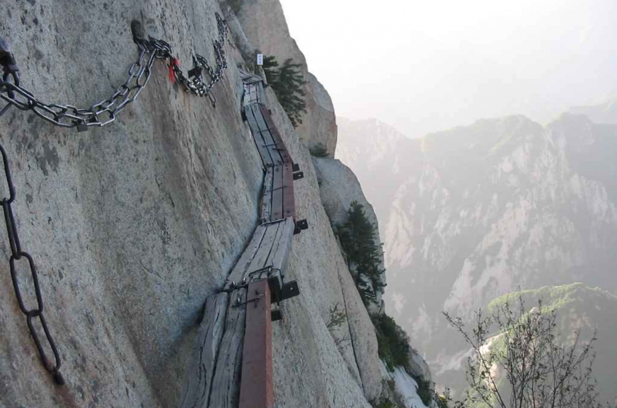 Een gevaarte van 2155 meter hoog steekt boven de wolken uit in het noord-westen van China. Ze is versierd met tempels en religieuze complexen. Het is één van China’s Five Great Mountains. En deze titel doet ze eer aan. Wil je namelijk aan de top tempels bezichtigen, dan moet je een pad bewandelen waar zelfs een berggeit hoogtevrees van krijgt. Het pad bestaat uit houten planken waarvan lijkt dat ze al eeuwen meedraaien. Het aantal relingen is beperkt. Stalen, onstabiele kettingen zijn je houvast. Een verkeerde beweging kan resulteren in val die je niet meer kan navertellen.