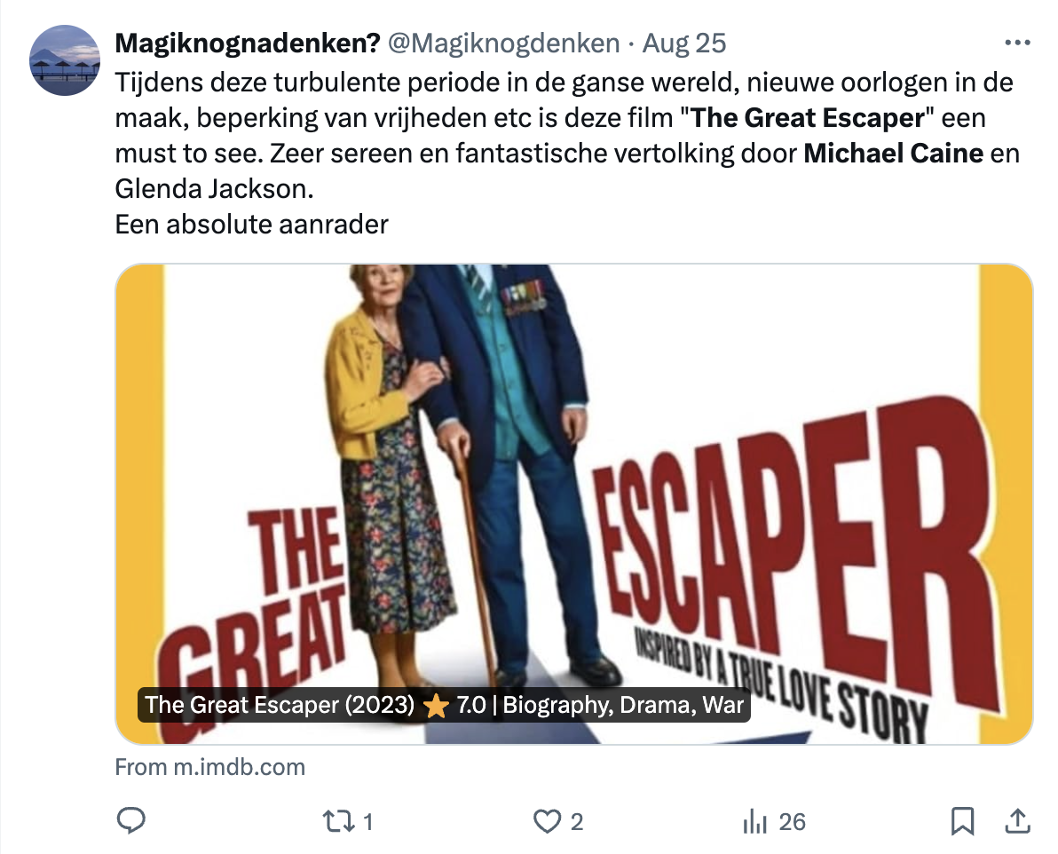 Het is duidelijk dat The Great Escaper bij veel mensen een diepe indruk heeft achtergelaten, wat zijn snelle opmars in de Netflix top 10 verklaart. Ga er dus goed voor zitten!