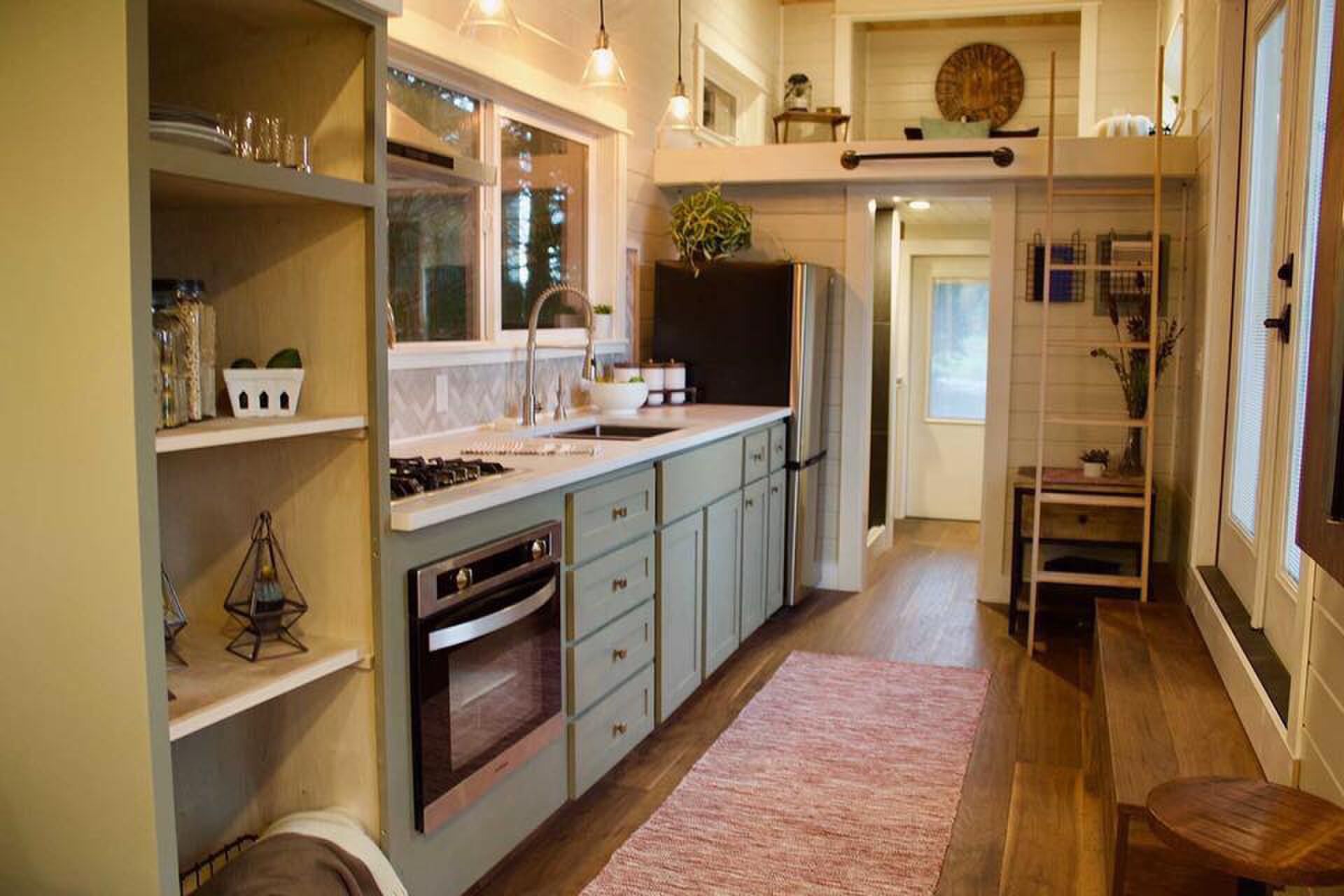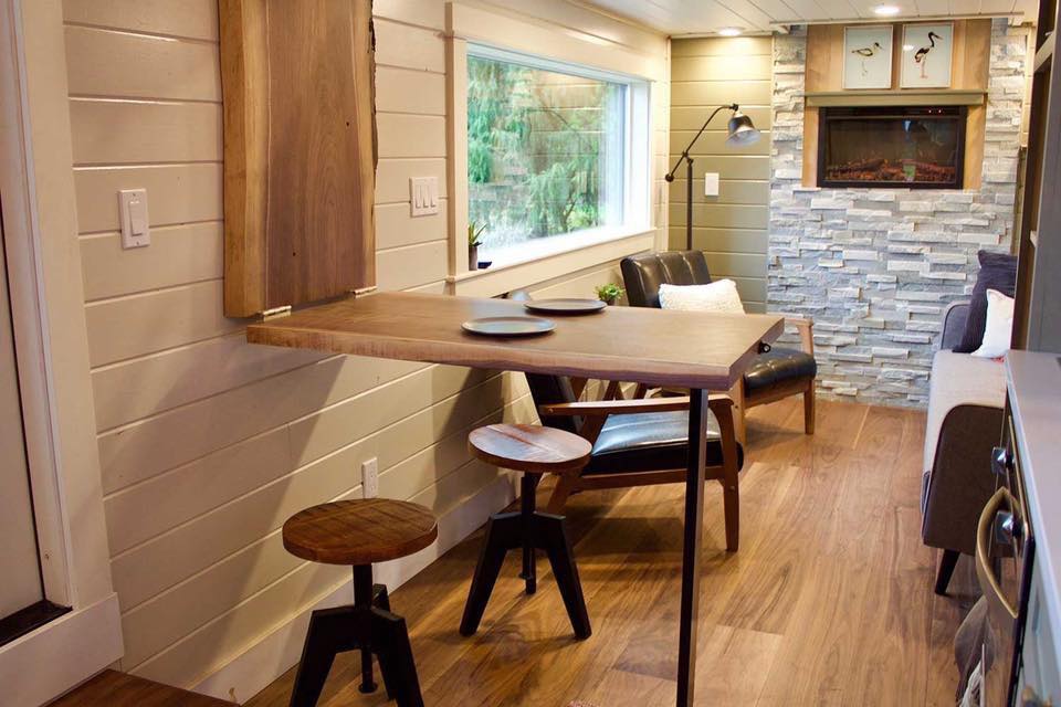 Dit tiny house staat te koop in Portland, Oregon. Het heeft het design en interieur van een warme berghut, inclusief houtwerk en open haard. Hiermee blijf je zelfs in de meest gure omgeving in een knusse, warme omgeving. Het prijskaartje liegt er niet om, maar komt bij lange na niet in de buurt van de duurste camper.