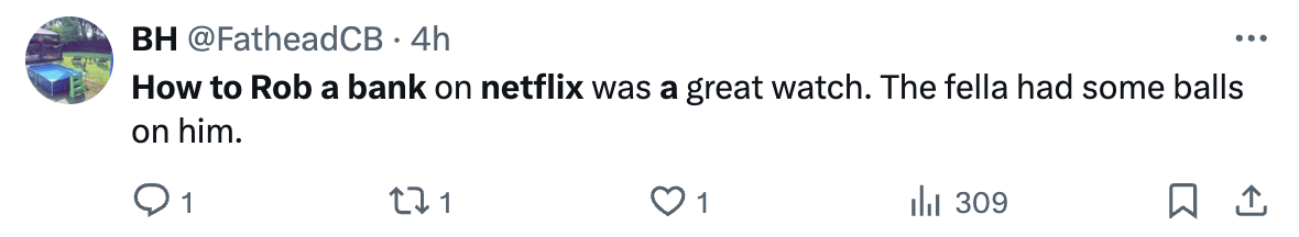 De nieuwste Netflix Original, How to Rob a Bank, is meteen een hit en staat al op de derde plek in de Netflix top 10. Documentaires over echte misdaden trekken altijd massaal veel kijkers. De nieuwe docufilm How to Rob a Bank maakt indruk en heeft dus direct een toppositie veroverd. Wij vertellen jullie meer over het verhaal, tonen de trailer en brengen de reacties in beeld.