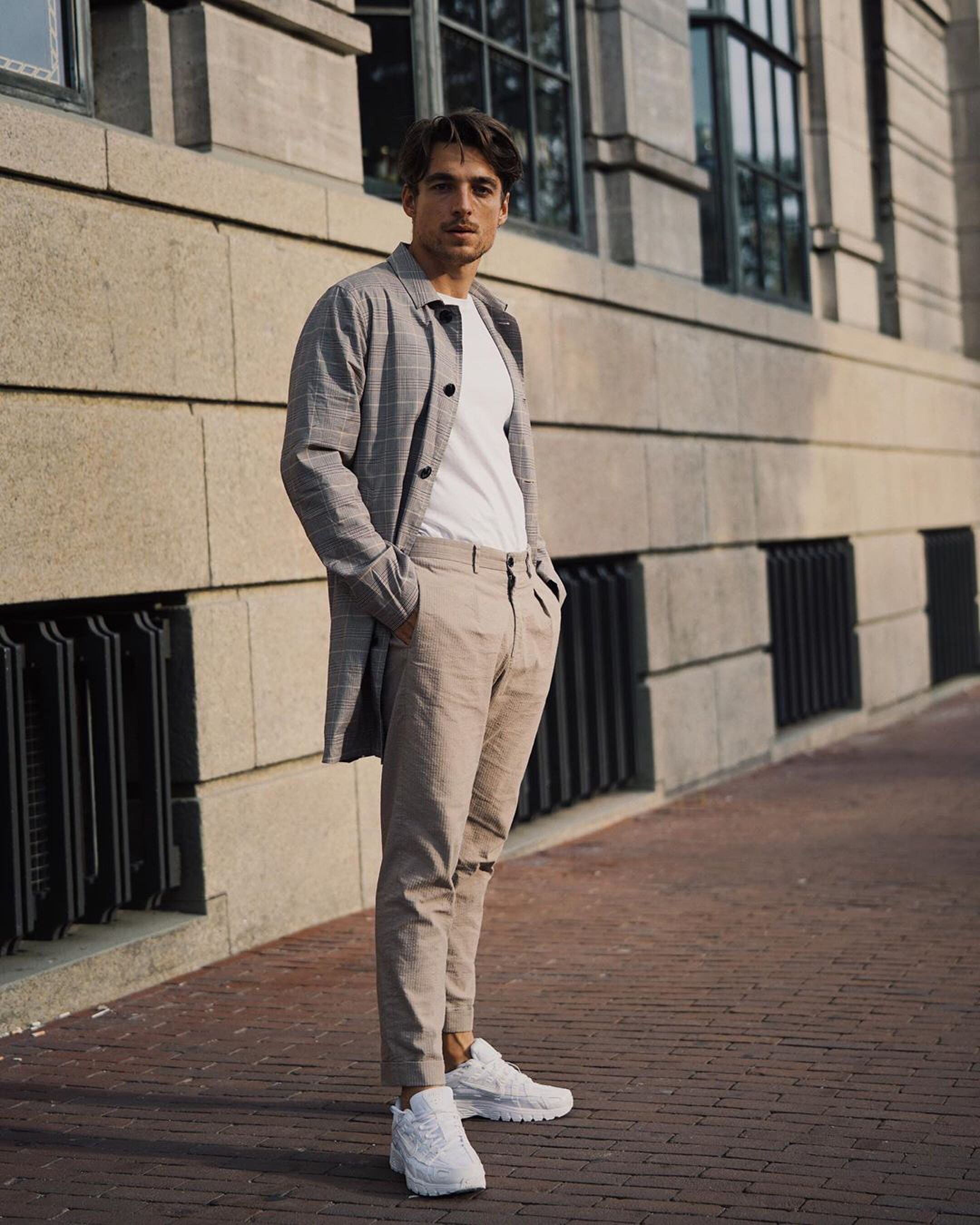 Het combineren van stijlen kan je doen door een lichte trenchcoat te combineren met een nonchalante pantalon en sportieve sneakers. Je outfit krijgt hierdoor zowel een verzorgde als ook speelse uitstraling.
