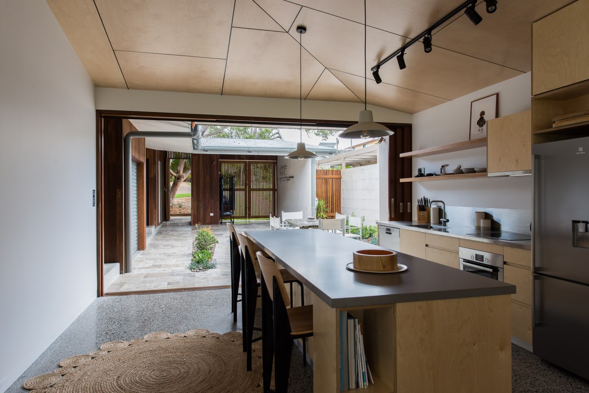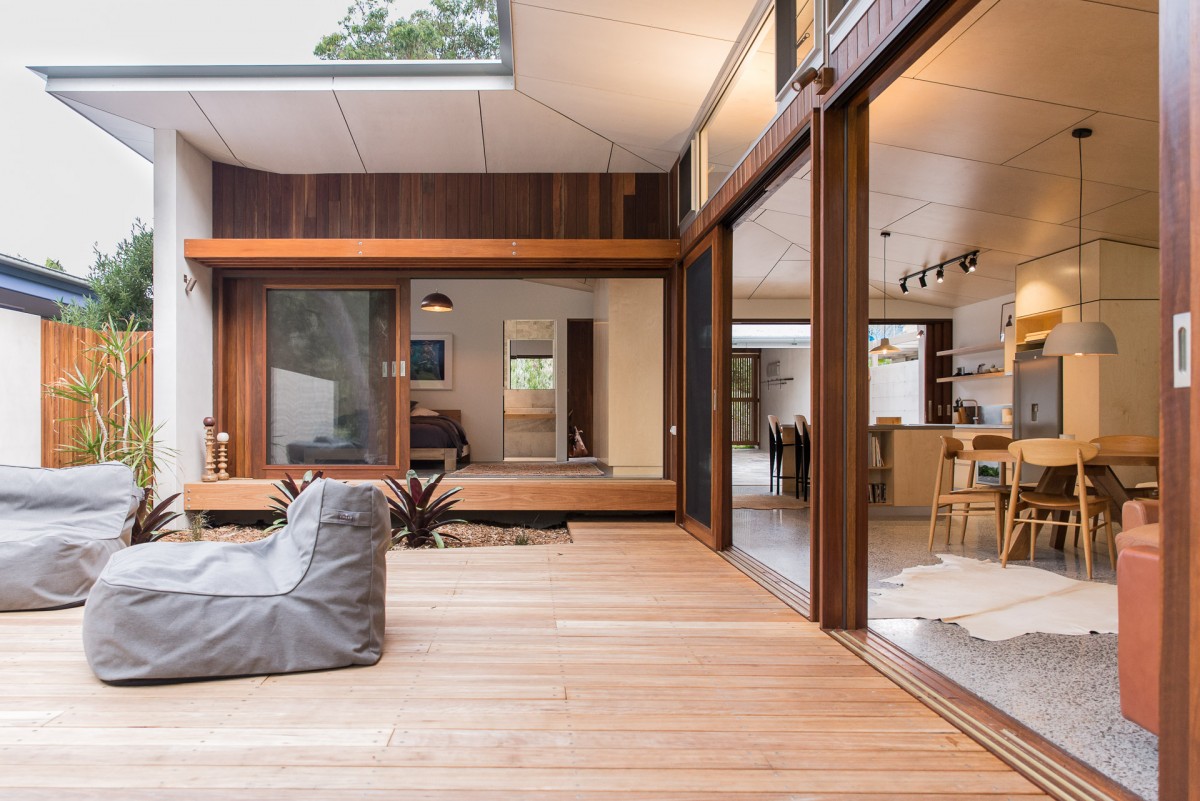 Gevestigd in Blueys Beach, Australië, hebben de jongens van Bourne Blue Architecture dit vakantie-optrekje geplaatst. De woning bestaat uit duurzame materialen en functies, zoals regenwater opslag en heat-pump water-heating technologie.