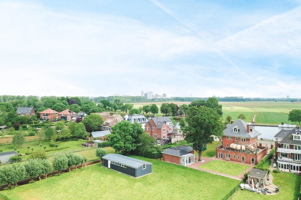 Daarnaast kijkt de villa vrijuit op de Amstel, de weilanden en de polders van het buitengebied. De Zuidas en de ‘skyline’ van Amsterdam gloren bovendien aan de horizon. De villa is voorzien van acht slaapkamers en heeft een totale oppervlakte van maar liefst 529 vierkante meter. In totaal beschikt de woning over 3735 vierkante meter grond en heeft een prijskaartje van 7,5 miljoen euro. Verre van een koopje dus, maar daar hoort dan wel een privé-steiger bij met ligplaats voor een boot, waarmee je binnen een half uur in het hart van Amsterdam kunt zijn. Een unieke locatie dus!